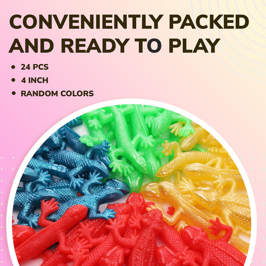 Lizard Stretchy Toy for Kids - 4” Reptile Toys for Party Favors, Sensory Toys - Treasure Box Prizes - Stretchy Strings - Easter Toys