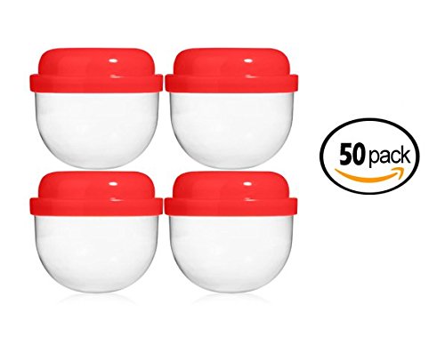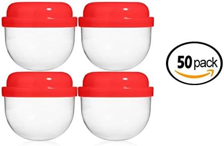 50 RED Vending Machine Capsules 2", Empty Acorn Cases for Gumball Containers, Toy Stands, and Party Favors, Red Colored Lids and Clear Bottoms