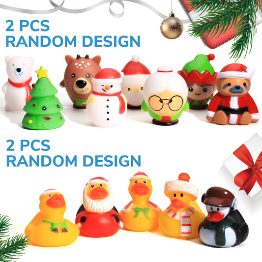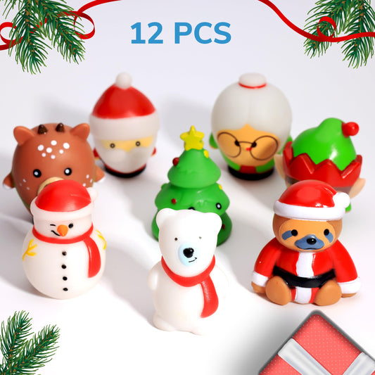 Christmas Stocking Stuffers 36 PCS Small Christmas Toys for Goodie Bags, Assorted Characters Rubber Toys and Stampers for Christmas Classroom Prizes