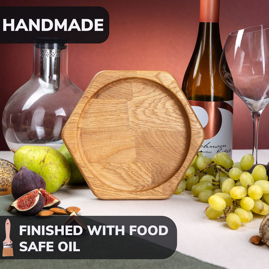 Planter Tray - 6 Inch Saucer - Oak Wood Drip Saucer - Drip Catcher for Plants - Hexagonal Tray - Planter Saucer - Saucer Wood