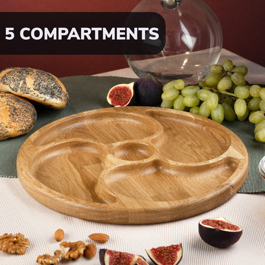 Portion Control Plate 11 inch - Compartment Plates with Dividers for Adults 5 Section Dish - Wooden Plate with Dividers for Adults