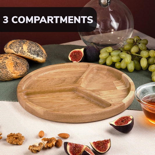 Portion Control Plate 10 inch - Compartment Plates with Dividers for Adults 3 Section Dish - Wooden Plate with Dividers for Adults
