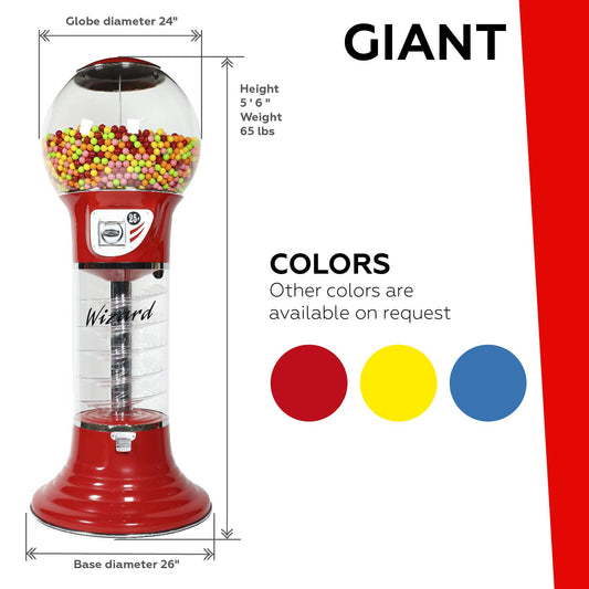 Gumball Machine RED Large Vending Machine 5?6" $0.25 Giant Spiral Gumball Machine with Dispenser for Gumballs Bubble Gums Bouncy Balls Toy Capsules
