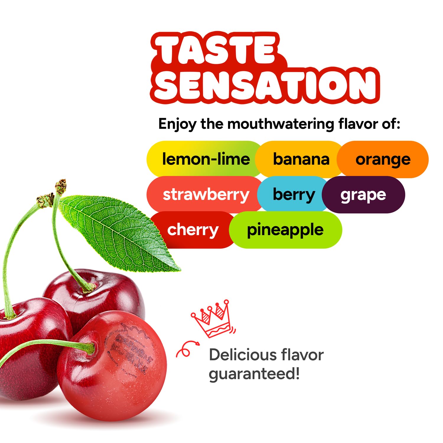 Small Gumball Refill Flavors: Cherry, Banana, Orange, Lime, Blueberry, Fruit, 2 x Mystery.