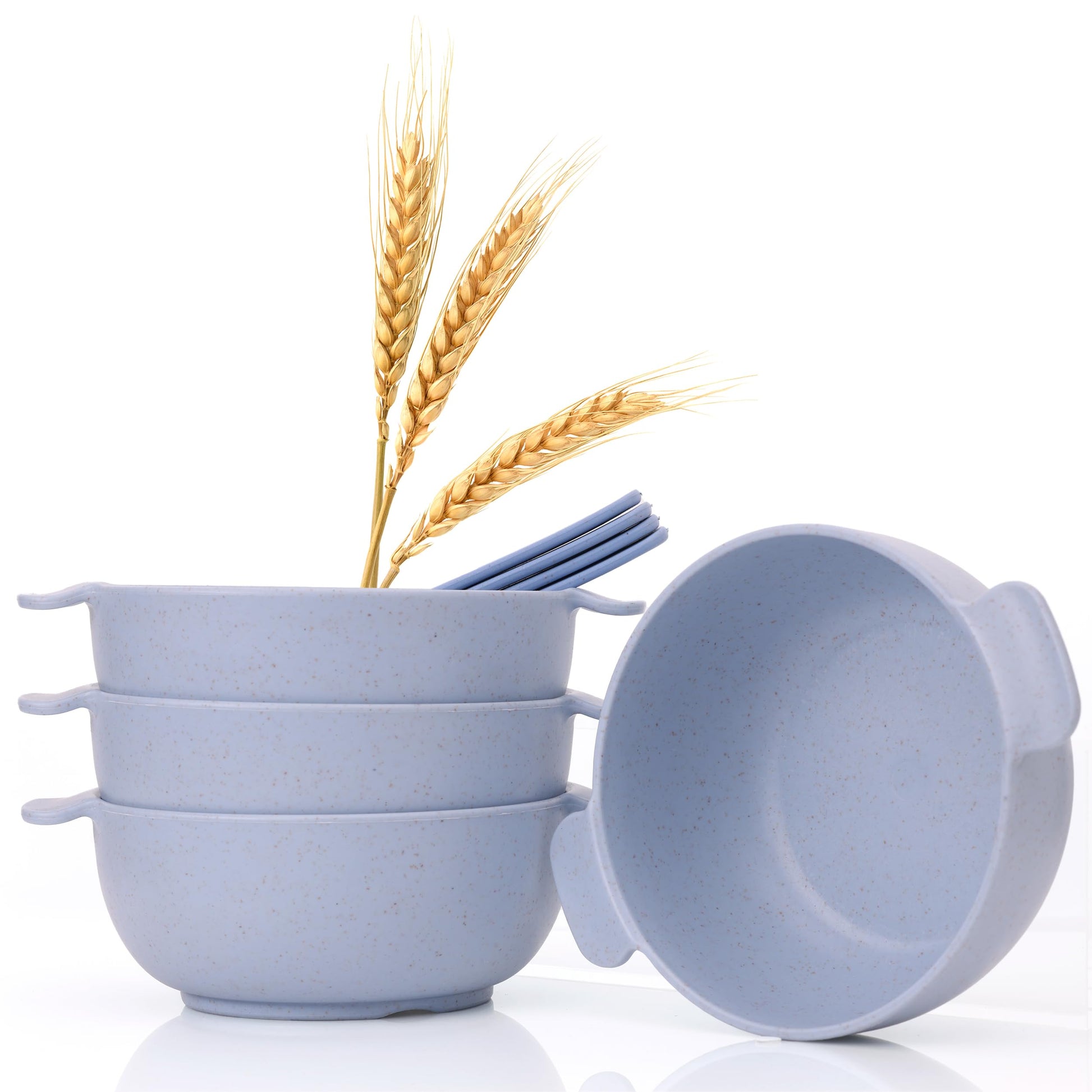 Wheat Straw Bowls with Handles, Set of 4, Light Weight & Reusable, 4 Colors, Dishwasher & Microwave Safe
